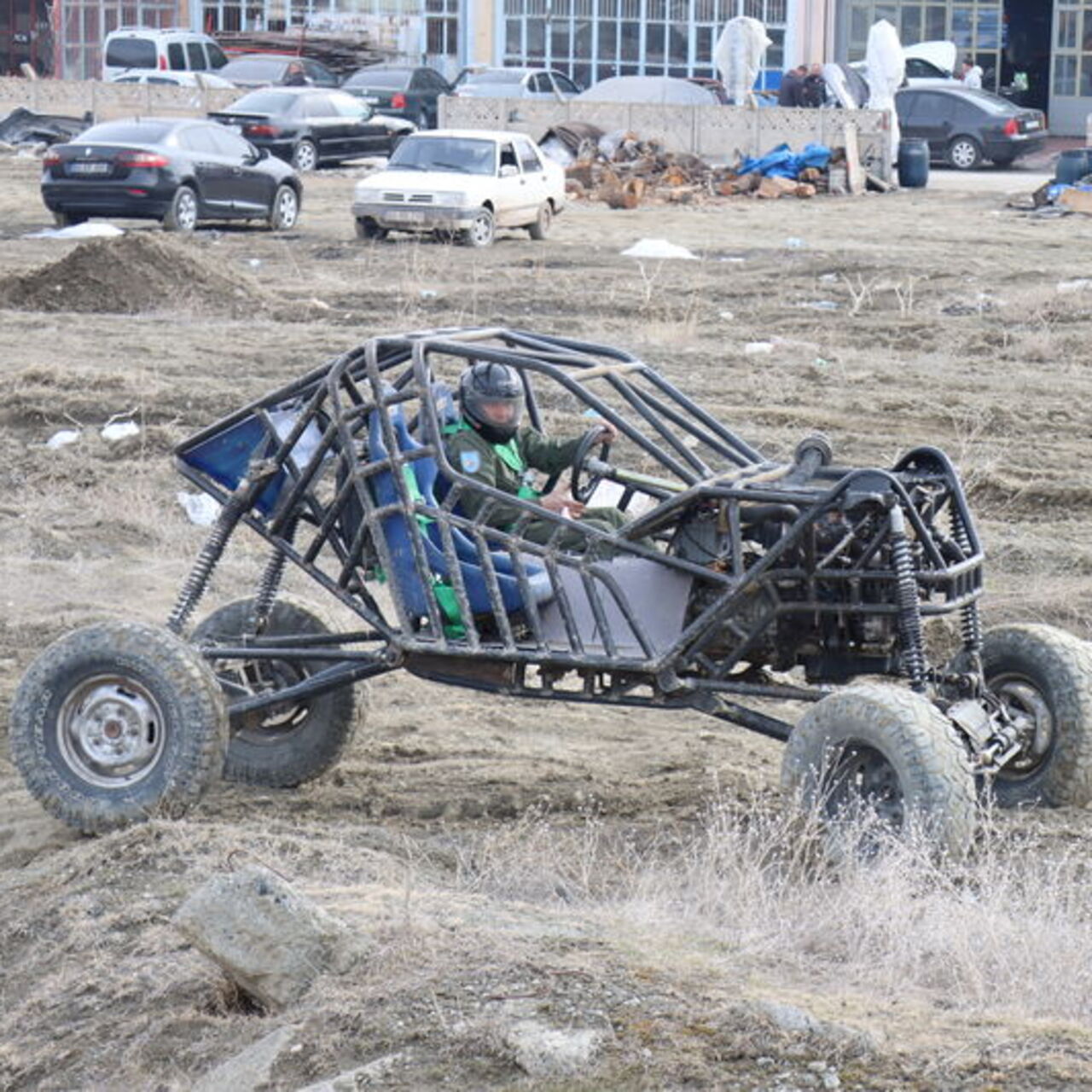 Erzincanlı 50 yaşındaki motor ustası Murat Sazçalan, sanayideki dükkanında doğal gaz borularından darbelere dayanıklı off-road aracı yaptı